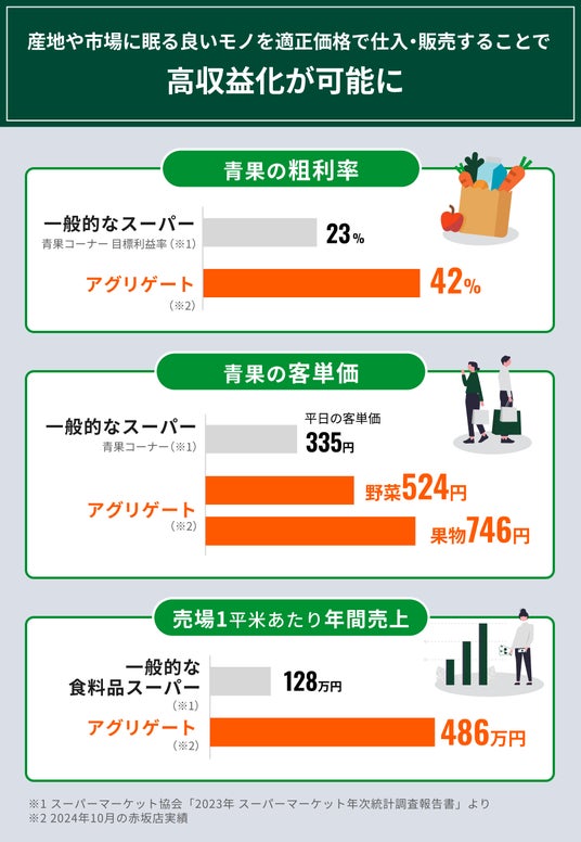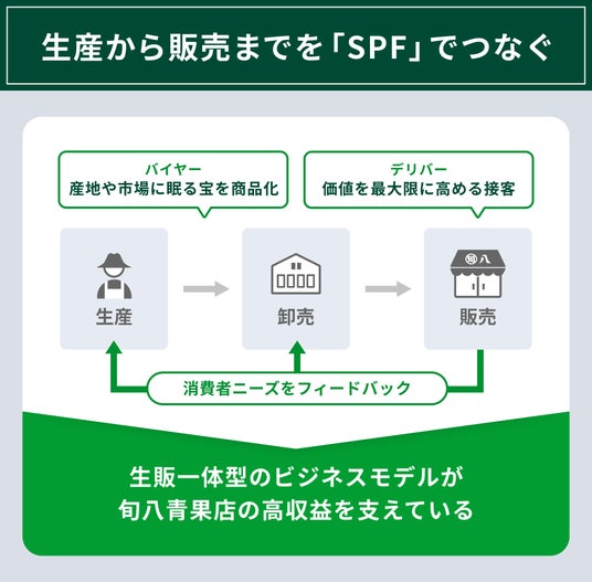 ※SPAとは:アパレル業界で使われるSPAは「Specialty store retailer of Private label Apparel」の略で、企画から製造、販売までを一貫して自社で行うビジネスモデルを指します。迅速な商品展開やコスト効率の向上を可能にし、消費者のニーズに柔軟に対応することができ、ユニクロ、ZARA、H&Mなどが採用しています。SPFはアグリゲートが独自に「Apparel」を「Food」に置き換えたもので、製造から小売までを垂直統合した販売業態を意味しています。