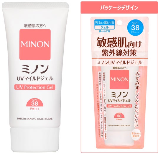 これらの使用状況に基づき、既存の国内基準最高レベルのUVカット効果をもつ「ミノンUVマイルドミルク」(SPF50+、PA++++)と使い分けができる「ミノンUVマイルドジェル」(SPF38、PA+++)を、日常的に親子で一緒に使用できる日焼け止めとして開発しました。