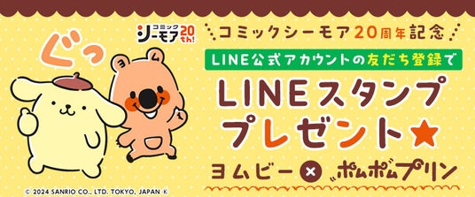 エヌ・ティ・ティ・ソルマーレ株式会社(本社:大阪市中央区、代表取締役社長:朝日利彰、以下 NTTソルマーレ)が運営する、国内最大級の総合電子書籍ストア「コミックシーモア」は、コミックシーモア公式キャラクターのヨムビーと、株式会社サンリオ(本社:東京都品川区、以下サンリオ)の人気キャラクター「ポムポムプリン」とコラボレーションしたオリジナルスタンプを無料でプレゼントいたします。