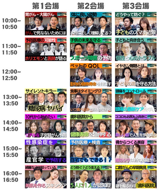 3つの会場で全20のトークセッションが行われました。それぞれのセッションでは、医療専門家と著名人総勢50名が登壇し、疾病予防はもちろん、歯科、アンチエイジング、子どもの健康課題など、予防医療の最新知見や実践的な方法が共有され、来場者からも多くの反響が寄せられました。