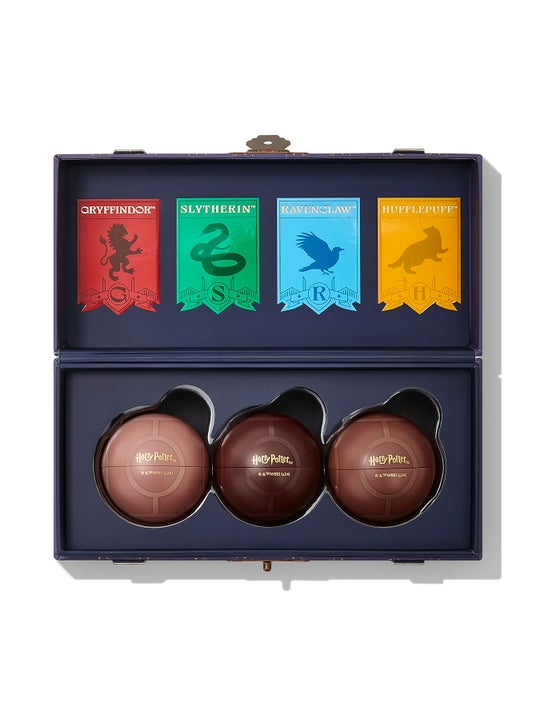 リップセット「Quidditch Champion Lip Set」は、ハイライターと同じく「クディッチ」で使用するボールをモチーフとしたデザインになっており、Beater、Chaser、Keeperの3色展開で、華やかな仕上がりからエッジの効いたルックまで長時間持続するカラーを提供します。