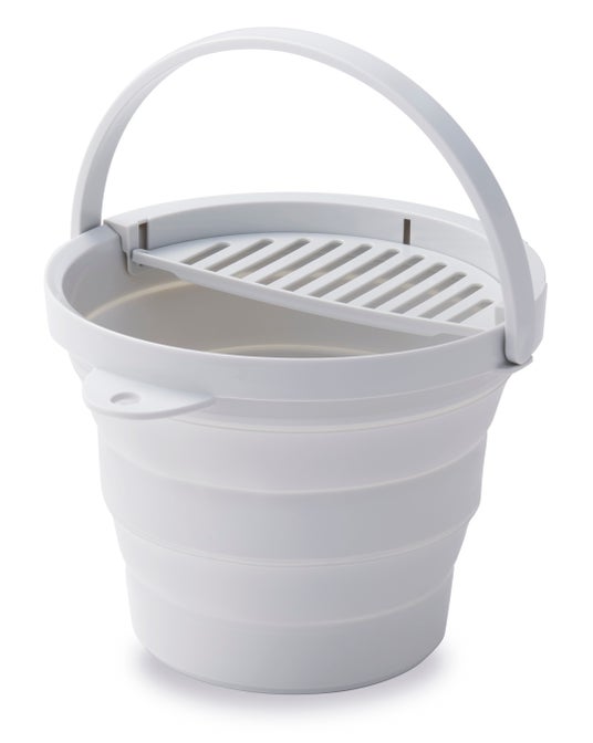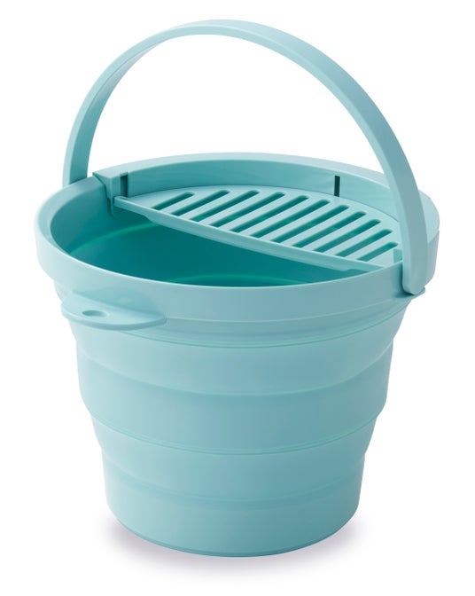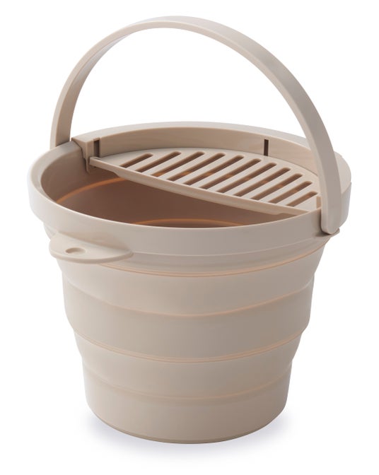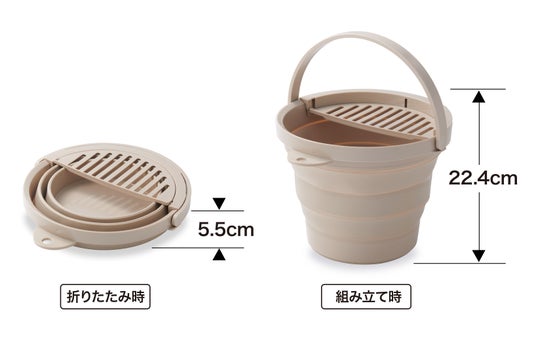 暮らしにプラス+チックな商品を提案する会社、株式会社伊勢藤は『おりたためるバケツ8L ちょい置きトレー付』を1月より新発売します。