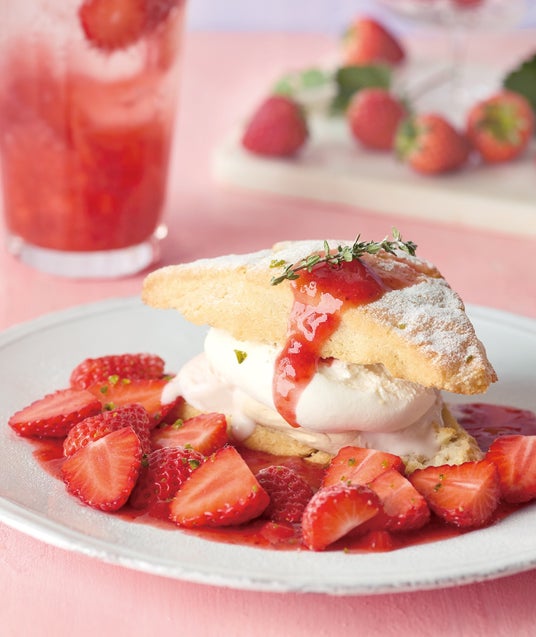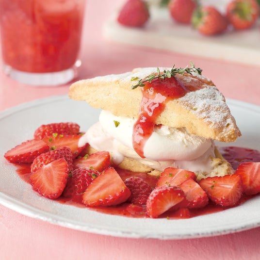 外はカリっと、中はしっとりふわふわに焼き上げたスコーンに、ほろ苦いキャラメルと岩塩で仕上げた塩キャラメルバターホイップ、練乳ホイップ、苺マスカルポーネアイスをサンドし、フレッシュ苺、ストロベリーソースを添えて苺たっぷりの美味しさに仕上げています。