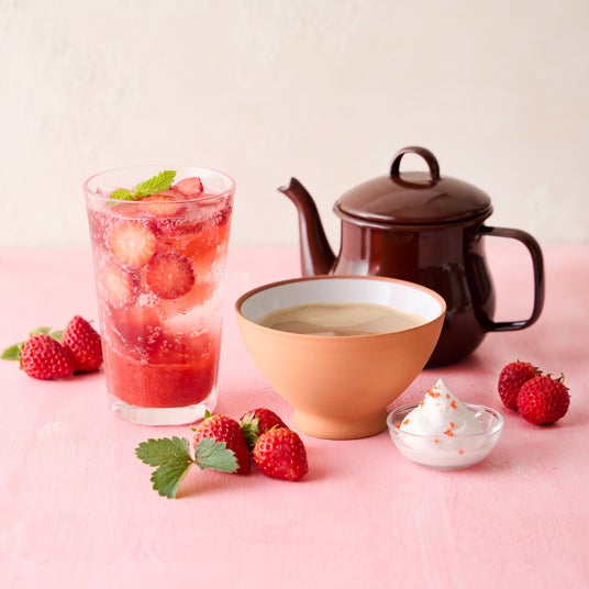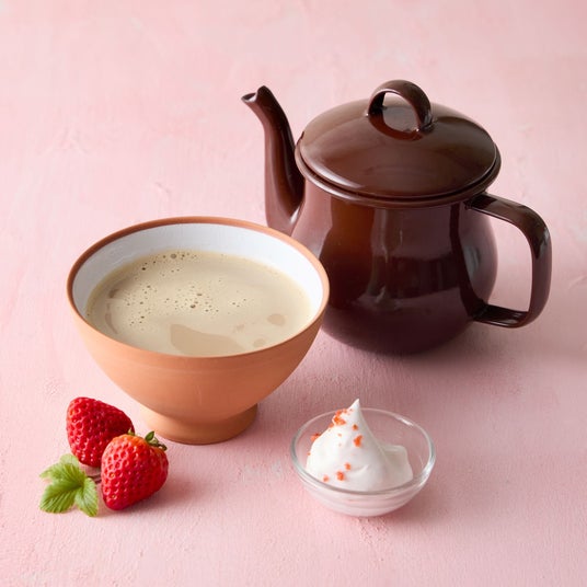 やさしい甘さのストロベリー風味のチャイに、苺のホイップを添えて。