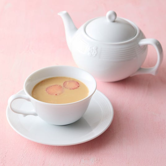 優しい甘みの苺ミルクキャラメルソースに、ベルガモットがフルーティーに香るアールグレイを合わせました。