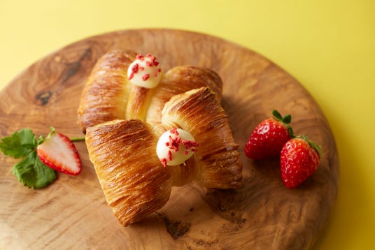 柔らかく口溶けの良いデニッシュ生地にいちごのシートを折り込み、リボン型に焼き上げました。砂糖、保存料、着色料不使用のフランス産のいちごジャムで仕上げています。シンプルな中にも広がるいちごの上品な甘さをご堪能ください。