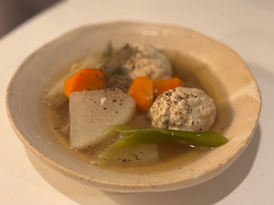 ・ショウガ入り鶏団子と根菜のスープ