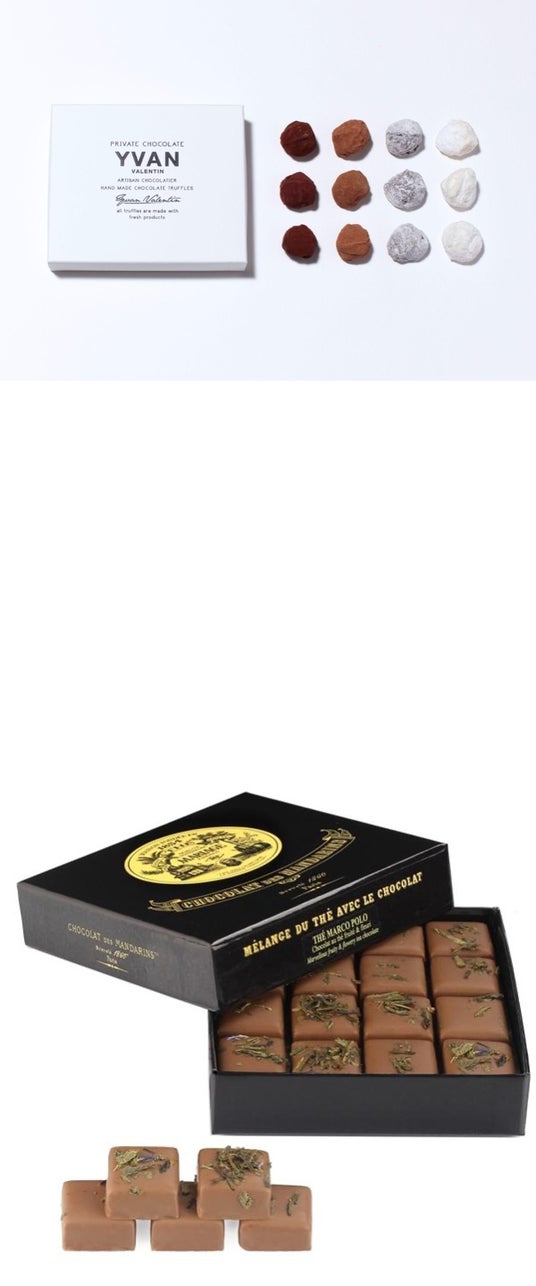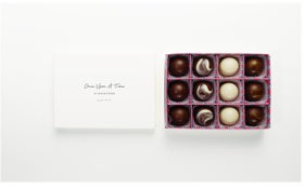 ダーク、プラリーヌ、ホワイト、カプチーノ、YVANの定番トリュフが3粒ずつ楽しめる12個入りボックス。2024年のバレンタインは全店舗で完売するほど、通常は紹介でしか手に入らない、知る人ぞ知るトリュフチョコレートです。