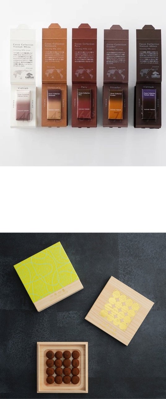 産地の異なる5種類のカカオを使用した風味豊かな羊羹の詰め合わせ。華やかな香りと甘みの後にカカオの苦みを感じられる「エクアドル」や、白餡とホワイトチョコレートが組み合わさった、ミルキーな味わいの「ベトナム ホワイト」など、多種多様なカカオの魅力を存分に堪能できます。