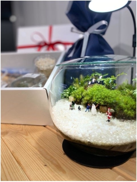 テラリウムスは都会で暮らす人へ植物のある生活を提案するブランド。苔テラリウムは数週間に一度ほどの水やりで、手間がかからないインテリアグリーンです。今回のポップアップショップでは、苔テラリウム本体や周辺パーツの販売だけでなく、好みの材料を詰め合わせて、お家でテラリウムを作成できるギフトBOXや、その場でお好みのテラリウムをお手軽に作れる作成ブースもあるので、クリスマスプレゼント選びにもぴったりです。