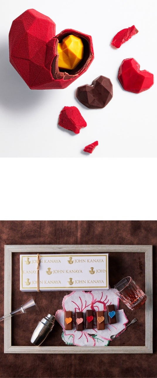 スペイン語で「彫刻」を意味する、宝石をイメージしたハート形の美しいチョコレート。ミルクチョコレートでかたどった手のひらサイズのハートの中に、様々な味わいの愛(ハート形の小さなチョコレート)が溢れんばかりに詰まっています。