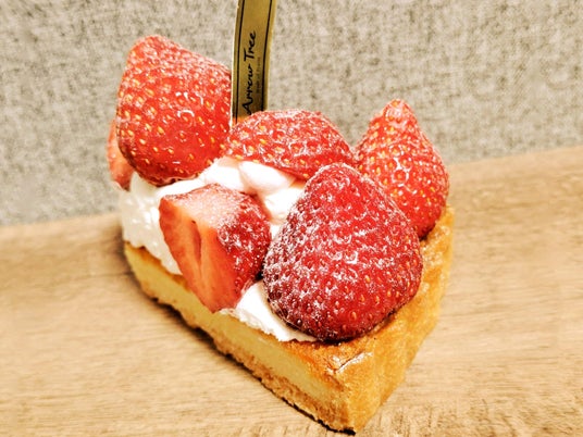 地元立川産の完熟いちごをふんだんに使用した、贅沢なタルトです。タルトのまわりはサクッと、中はしっとりとしたアーモンドクリームが入っており、いちごと相性抜群です。