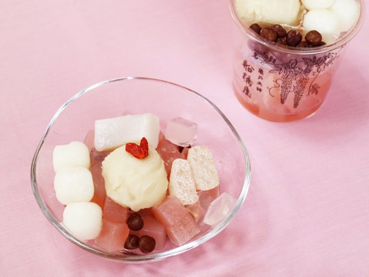 苺寒天と寒天にミルク餡を乗せ、人気の白玉を添えて白蜜でお召上がり下さい。見た目もキュートで苺ミルクの美味しさがギュッと詰まった一品です。※販売期間:1/6~