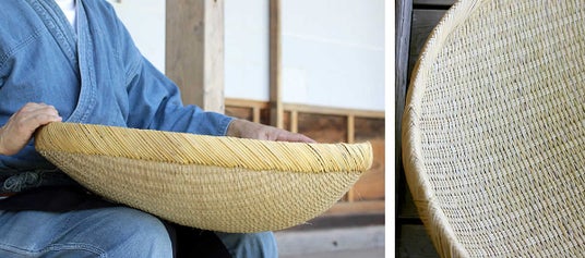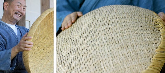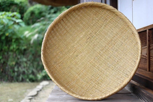直径60cmの圧倒的な大きさを誇り、干し野菜や梅干しづくりなど、さまざまな用途で活躍します。適度な深みがある上、内側は竹表皮で編まれツルツルの手触りに仕上げられており、見た目の美しさだけでなく使い心地も抜群です。