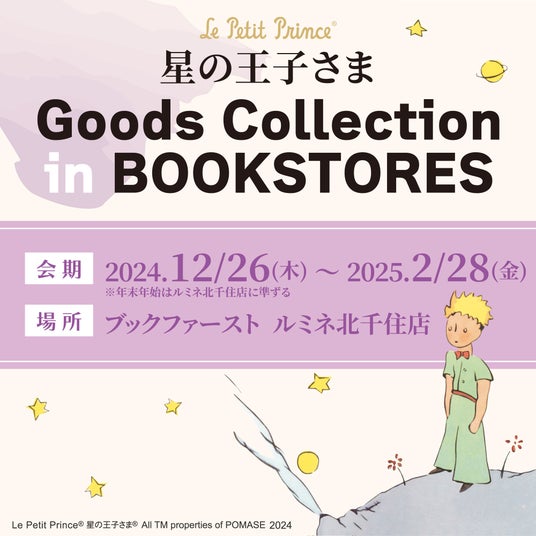 株式会社マリモクラフト(本社:東京都江東区)は、世界中で愛され続けている絵本『星の王子さま』の名シーンをモチーフにしたオリジナルグッズを、巡回中の期間限定書店ポップアップショップ「星の王子さま Goods Collection in BOOKSTORES」として12月26日(木)よりブックファースト ルミネ北千住店にて販売いたします。「ミニグラス」や「マグカップ」「マルシェバッグ」「パフクッション」など普段使いに便利なアイテムを豊富に取り揃えました。さらに、『星の王子さま』オリジナルグッズを1会計1,000円(税込)以上ご購入でノベルティ「ポストカード」を1枚プレゼントいたします。