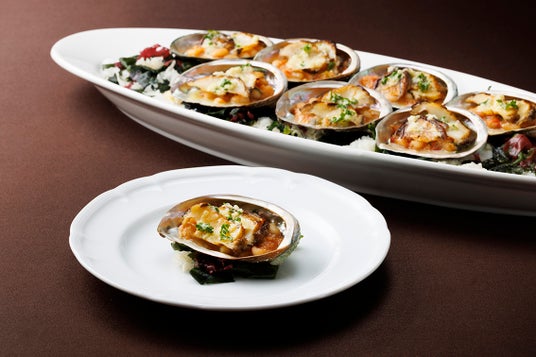 ・蝦夷鮑のムニエル 白いんげん豆のラグーに生ハムの旨味と磯の香りを添えて