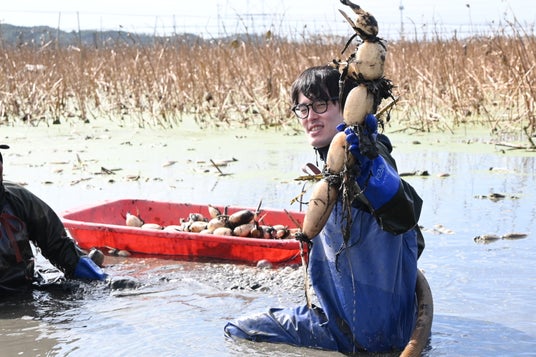 「古代れんこん」を使用したサラダは2023年から3回目の販売となります。「古代れんこん」は千葉県成田市の有坂農場が育てた特別なれんこんで、甘みがしっかりと感じられ、味が濃くねっとりとした食感が特徴です。例年、一部の社員で有坂農場へ収穫体験に伺い、収穫の大変さとれんこんへのこだわりを直接伺っています。WithGreenが自信を持っておすすめできる食材です。