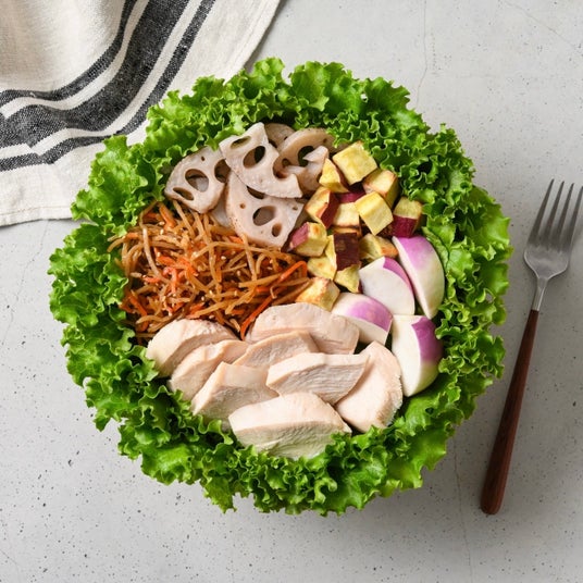 有坂農場の古代れんこんと蒸し鶏の根菜サラダ