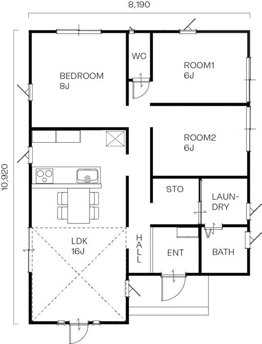 ワンフロアで全てが完結する平屋は生活動線もシンプルに。どこにいても家族を身近に感じることができる、家族時間も自分時間も充実する住まいです。[延床面積 / 81.15平方メートル (24.55坪)1F床面積 / 81.15平方メートル (24.55坪)]