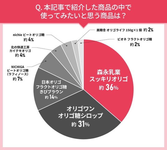 回答者にGranza Beautyの記事『オリゴ糖おすすめ10商品をプロが厳選|健康効果やメリットデメリットも解説』にある商品の中でどの商品を使ってみたいかを聞いてみました。ここでは『使ってみたいオリゴ糖のTOP5』を紹介します。