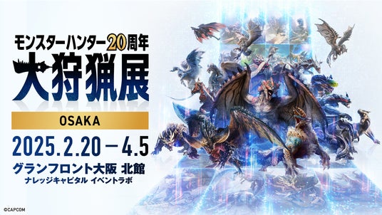 「モンスターハンター」シリーズ20周年を記念し、東京で開催された展覧会「モンスターハンター20周年-大狩猟展-」を2025年2月20日(木)~4月5日(土)の日程で、大阪・グランフロント大阪 北館 ナレッジキャピタル イベントラボにて開催いたします。