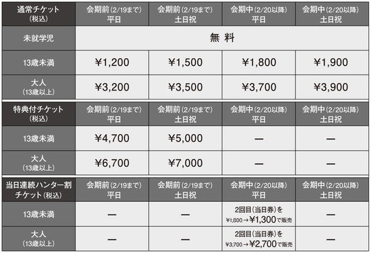・「当日連続ハンター割チケット」(平日のみ・大人/13歳未満) ※会期中限定