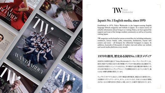 Tokyo Weekenderは、1970年創刊され、日本現存最古の歴史を持つ外国人向けの英字ライフスタイルメディア。外国人編集スタッフによる、他にはない魅力的な日本の情報を、日本在住の外国人はもちろん、増加する訪日外国人旅行客(インバウンド)に向けて、フリーマガジンとしてお届け。都内400箇所にて約20,000部を配布。