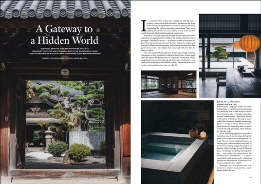 今号「The Bucket List 2025」では、自然の驚異に満ちた離島から、食と芸術の創造性にあふれた都会まで、ユニークな目的地と体験の数々を厳選。奄美群島、首都圏外郭放水路、シャークダイビング、十二単体験、イマーシブアートスポットなど、まだあまり知られていない日本を紹介しています。また、表紙を飾っているオールインクルーシブの旅行パッケージ「Busho」は、事前に行き先を知ることができないミステリーツアー。“侍がいた時代にタイムスリップしたかのような体験”ができるとして、外国人にも人気が高まりつつあります。