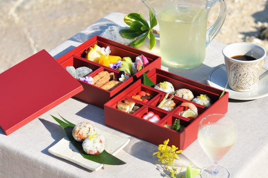 ~琉球王朝時代より旧暦と共にある沖縄の年中行事や祭祀の一つ「はまうり」を体験。星のや沖縄のシェフが華やかにアレンジしたモーニングBOXで健やかな一年を願う。~