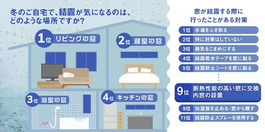 – 結露が気になる場所は「リビングの窓」のほか「寝室の窓」「浴室の窓」“ヒートショックリスク”の高い場所は結露も発生しやすい。