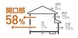 冬に暖房を使用している時、58%の熱が窓やドアといった開口部から出入りしています。したがって暖房効率を高めるためには、窓の部分的な断熱が効果的とされています。