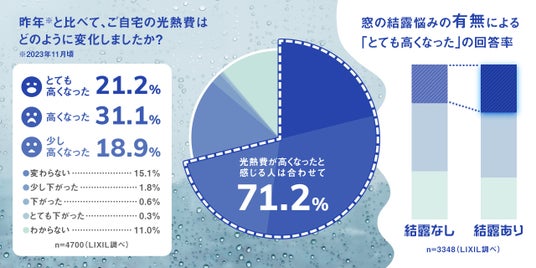 – 窓の結露に悩んでいる人ほど、「光熱費が高くなっている」と感じている結果に。