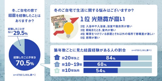 株式会社LIXIL(以下、LIXIL)は、全国の20~50代の男女4,700人を対象に冬(主に11月~2月)における窓の結露と住宅の断熱に関する意識調査を行いました。