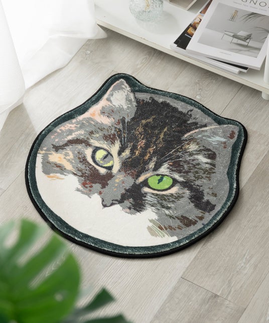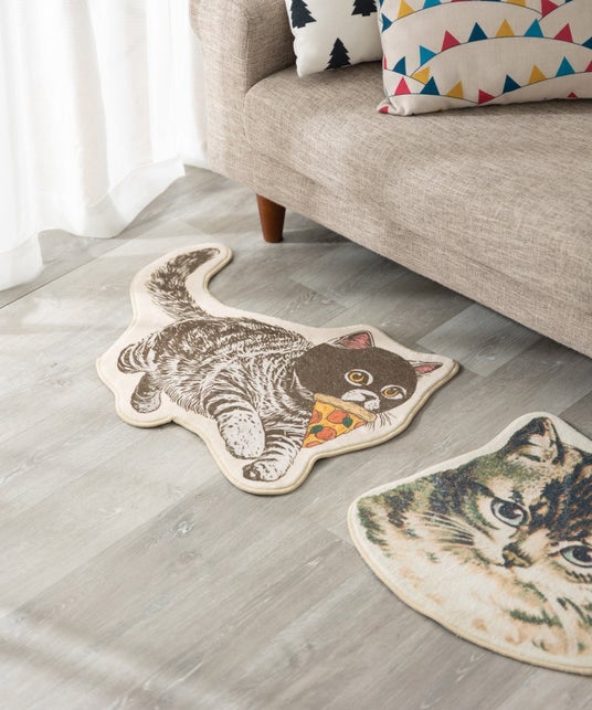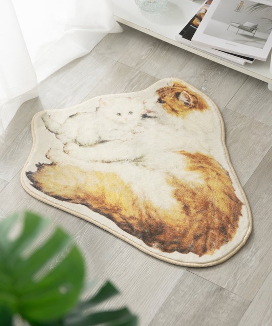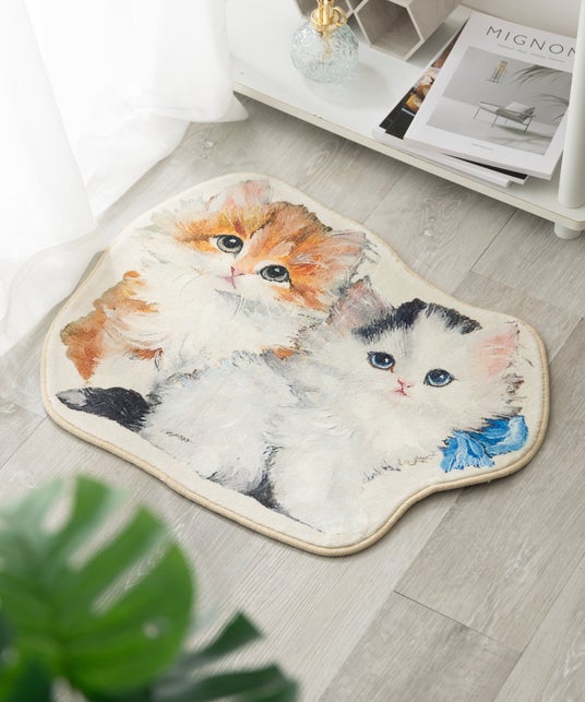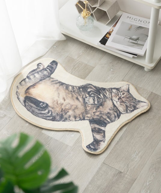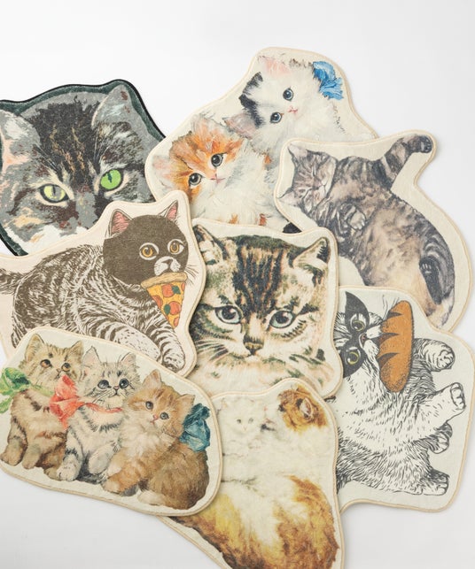 愛くるしいネコちゃんたちが描かれた、ダイカットデザインの起毛マット。