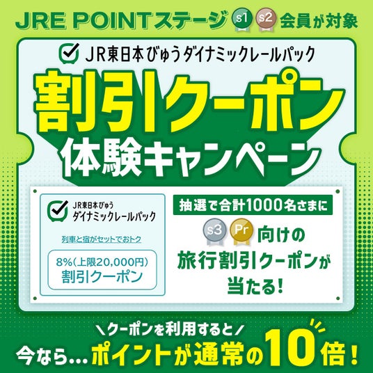 「JR東日本びゅうダイナミックレールパック」ご利用代金8%割引クーポンを
