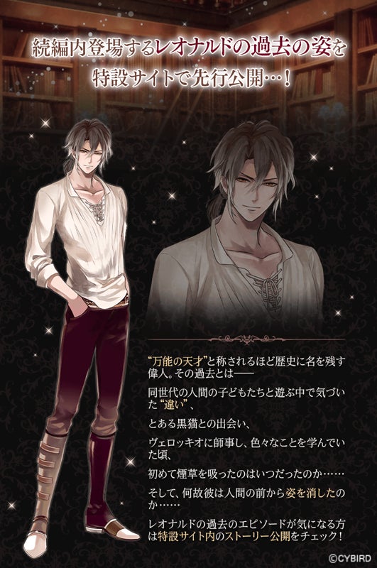 株式会社サイバード(本社:東京都渋谷区、代表取締役社長 兼 CEO 長嶋 貴之、以下「サイバード」)が手掛ける、全世界でのシリーズ累計会員数4,000万人を誇る大人気恋愛ゲーム「イケメンシリーズ」の人気作『イケメンヴァンパイア◆偉人たちと恋の誘惑』は、「レオナルド・ダ・ヴィンチ(CV:津田 健次郎)」の続編ストーリー「至極の愛編」を、2024年12月20日(金)より配信開始しました。