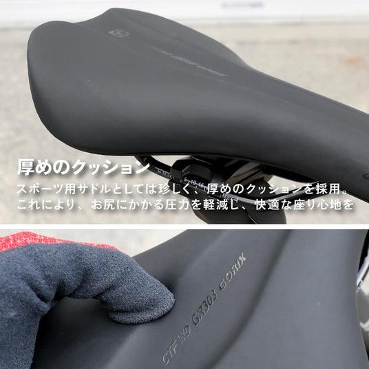 スポーツ用サドルとしては珍しく、厚めのクッションを採用しました。