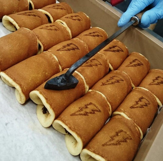 愛知県豊橋市の老舗和菓子店『お亀堂』のあん巻きと『有楽製菓』のブラックサンダーがコラボした商品【ブラックサンダーあん巻き】 。著名人のSNSや夕方のニュース内でも紹介された人気商品です。