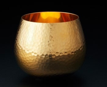 K24 スインググラス 槌目<石川光一 作> 約200g、高さ約7.5×幅約8.0cm 6,754,000円(販売予定価格)