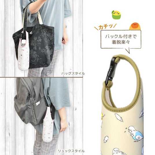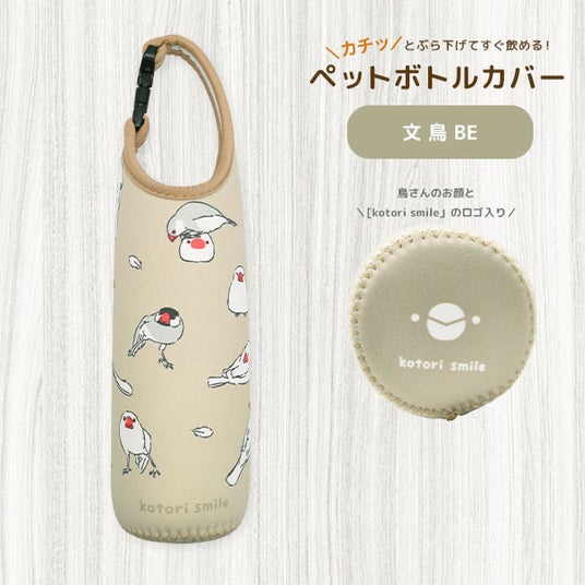 鳥さんのかわいい仕草がデザインされたペットボトルカバー。