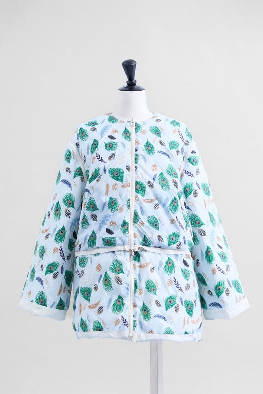今回のコラボレーションシリーズで登場するのは、ダウンジャケットとトートバッグ2種の計3型。ダウンジャケットはKEITA MARUYAMAオリジナルアーカイヴ柄のリバーシブルに加え裾や袖が取り外しでき、幾通りの着方もできるMulti Way。