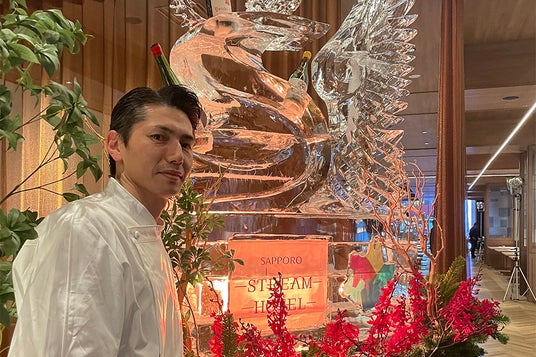 NPO法人日本氷彫刻会に在籍し、道内の各大会で優勝するなどマルチな活動を行うシェフ・福元 崇による氷彫刻も展示いたします。
