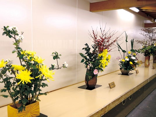 靖國神社献華協會は、池坊や草月流、小原流といったさまざまな流派の会員からなり「いけばな」を奉納する活動を行っています。新年特別献華展は拝殿前華席にて催されます。
