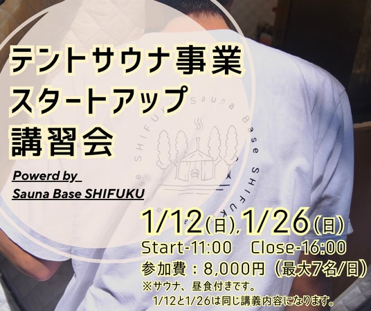 「Sauna Base SHIFUKU」を運営する株式会社しふくのときは、2025年1月12日(日),1月26日(日)の2日間、テントサウナ事業の起業を目指す方向けに特別なワークショップを開催します。