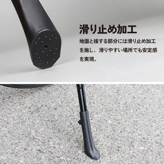 使用シーンや自転車に合わせて、スタンドの長さを調整可能。しっかり自転車を支えます。