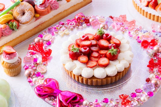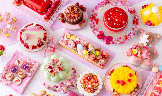 ピンクは気分がアガる色。キラキラのビジューやリボン、ハート、クマなどカワイイ要素を詰め込んだスイーツをエグゼクティブ・ペストリーシェフ百田 利治(ひゃくだ としはる)が創作します。ミニドーナツ、マカロン、お花のチョコなどをトッピングした「デコ盛りミルキータルト」は、しっとりとした生地とミルキーなババロアに様々な食感が重なり合います。真っ赤ないちごゼリーとライムムースを組み合わせた「レッド・ストロベリーセンセーション」は、ぷるぷるゼリーとパッションフルーツの香りが印象的です。コーヒークリームとアーモンドプラリネタルトを組み合わせた「タルト・フレーズ」、ミルクの代わりにココナッツで深みをだしたシェフシグネチャーの「ストロベリー・ヴィーガンチョコレートケーキ」もおすすめです。