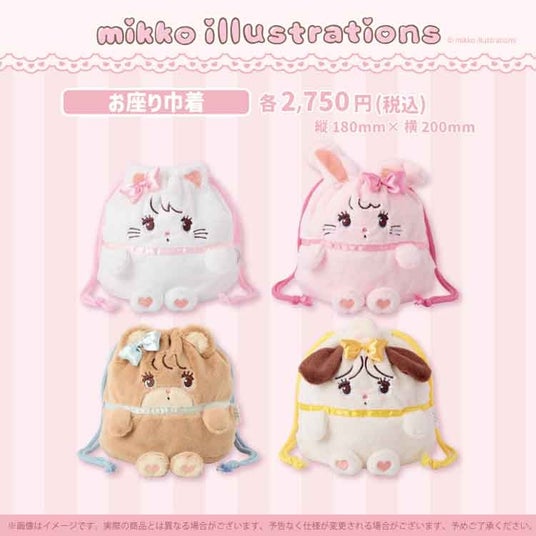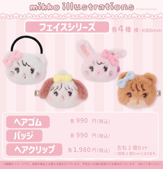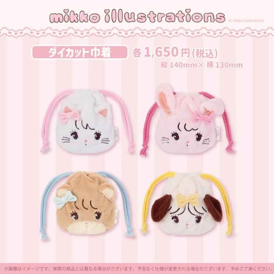 注目は”フェイス巾着””おすわり巾着”など巾着の新商品、”ヘアクリップ””ヘアゴム””ヘアターバン”などのヘアグッズの新商品が登場。他にもマスコットや既存商品も多数展開しております。