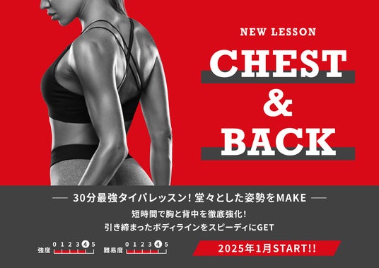 新レッスン『CHEST&BACK』は、30分間で胸と背中を集中的に鍛え、理想の堂々としたボディラインに近づける効率型プログラムです。