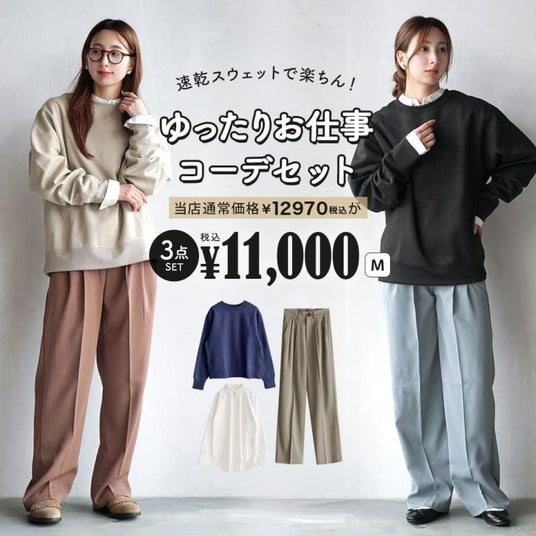 速乾スウェットで楽ちん!ゆったりお仕事コーデセット