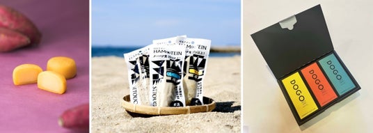 愛媛の定番のお土産となっているお菓子「母恵夢(ポエム)」や、みかんのお菓子、日本三大栗の1つである中山地区の栗を使った隠れた名品・栗の甘煮、人気急上昇の鱧でできたプロテインバー「鱧テイン」、入浴剤「高級温泉のもと 道後の湯 DOGO」などが揃います。